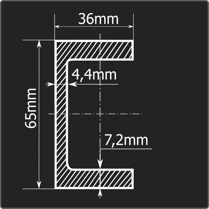 Швеллер стальной горячекатаный с параллельными гранями полок 6,5П и длиной 12м. Материал - углеродистая сталь. Соответствует требованиям ГОСТ 535-2005.
