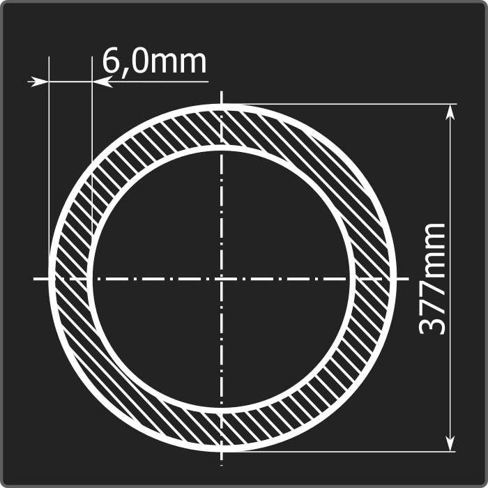 Труба электросварная стальная круглого сечения диаметром 377мм, толщиной 6,0мм и длиной 11-12м. Материал - углеродистая сталь. Соответствует требованиям ГОСТ 10705-80.